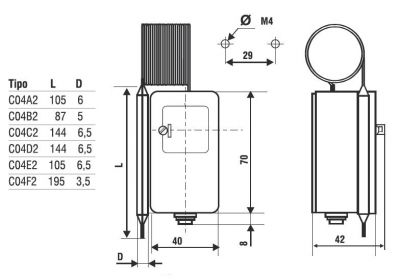 شاخصه های ترموستات دنباله دار فانتینی مدل C04RI