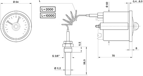 قطر صفحه 6 سانتیمتر – رنج کاری از منفی 30 تا مثبت 350 درجه سانتیگراد – بدنه مشکی (معمولی) – اتصال 3/8” یا ½” – یک کنتاکنت – طول سنسور 2 متر