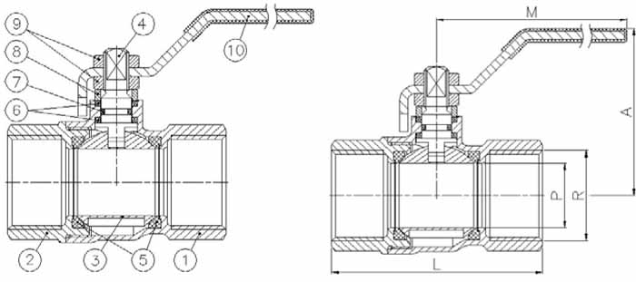 فشار PN40 - دما 180+ تا 0 درجه سانتیگراد - برنجی با روکش کروم - دستگیره فولادی - اتصال دنده ای