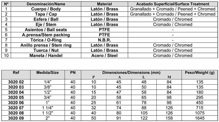 اطلاعات فنی شیرتوپی گازی دنده ای GENEBRE مدل 3020 :